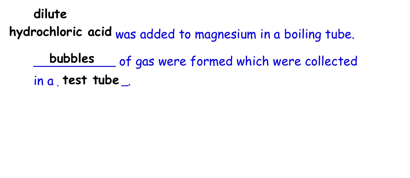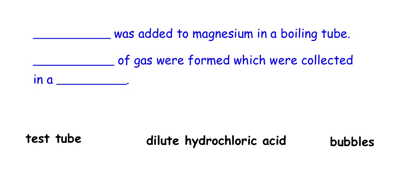 - Put 3cm3 of hydrochloric acid in a test tube.