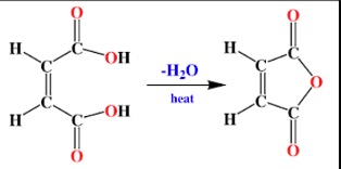 Cis-butenedioic acid readily eliminates water on heating. The product is known as a cyclic anhydride.
