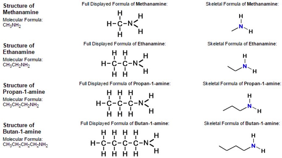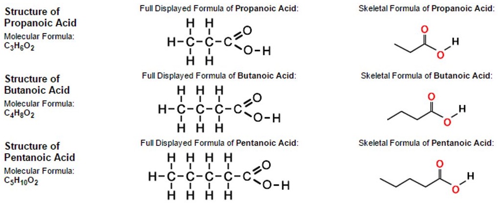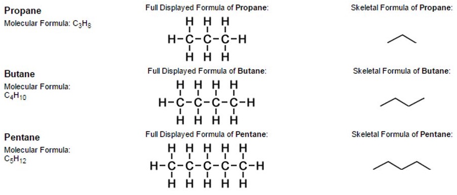 The simplest examples of skeletal formulae are those for linear alkanes.