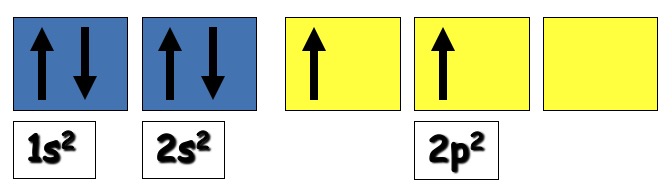 In the ground state, carbon has the electron arrangement 1s2 2s2 2p2.