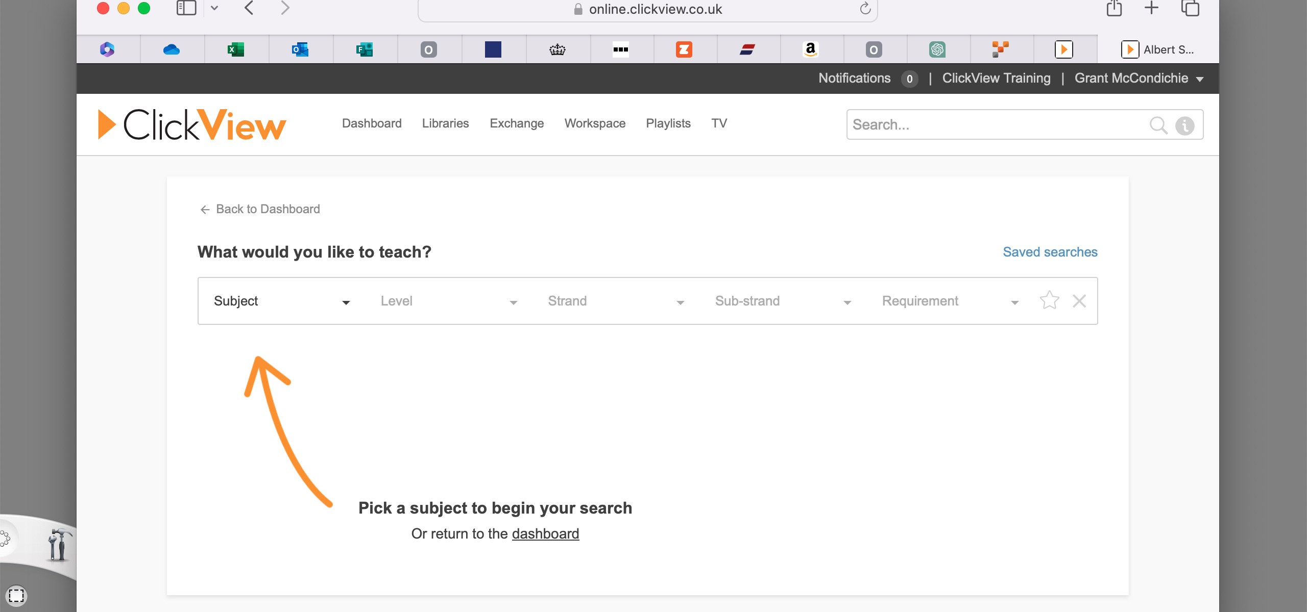 Choose your subject select CfE level and strand. Don't be too specific here as there may not be videos that have been maped to your subject.