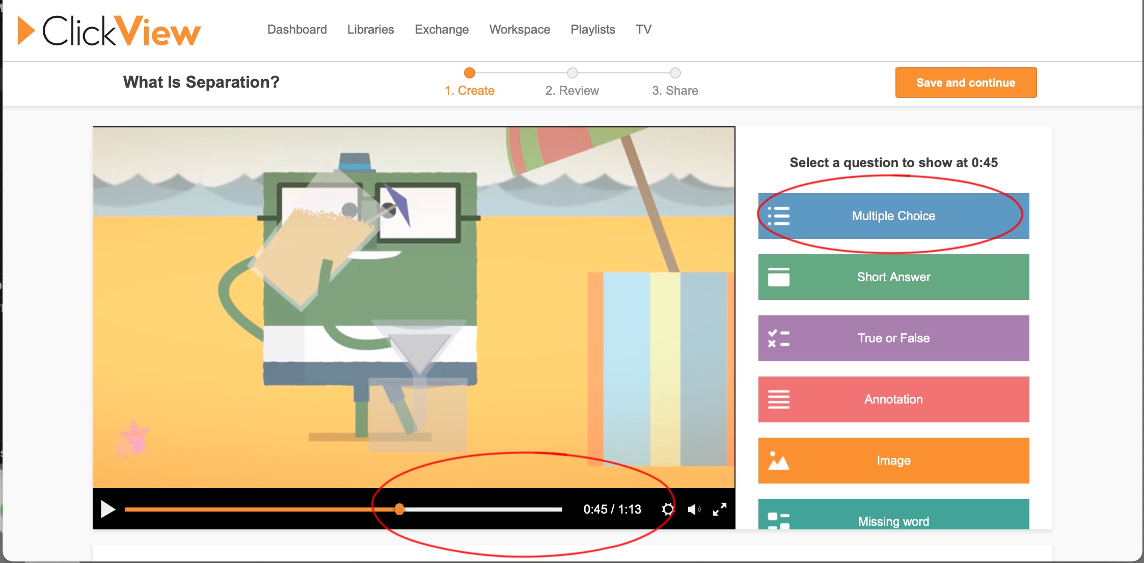 You can now begin the process of creating an interactive video. You can either play the video through then hit pause when you want to add question or slide the time bar along to the point where you want to add a question. In the picture below, it can be seen that i decided to add a multiple choice question at 45 seconds.