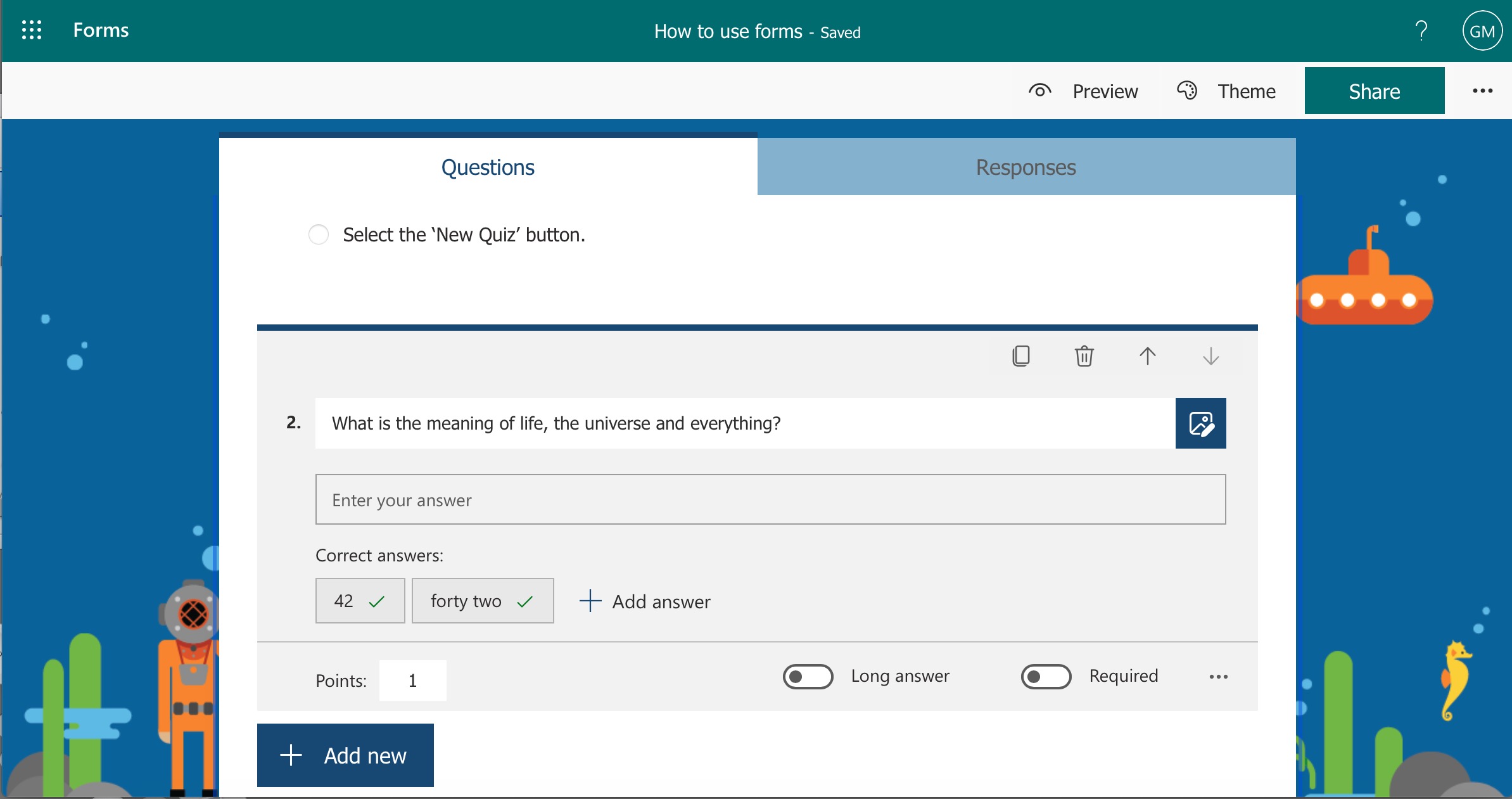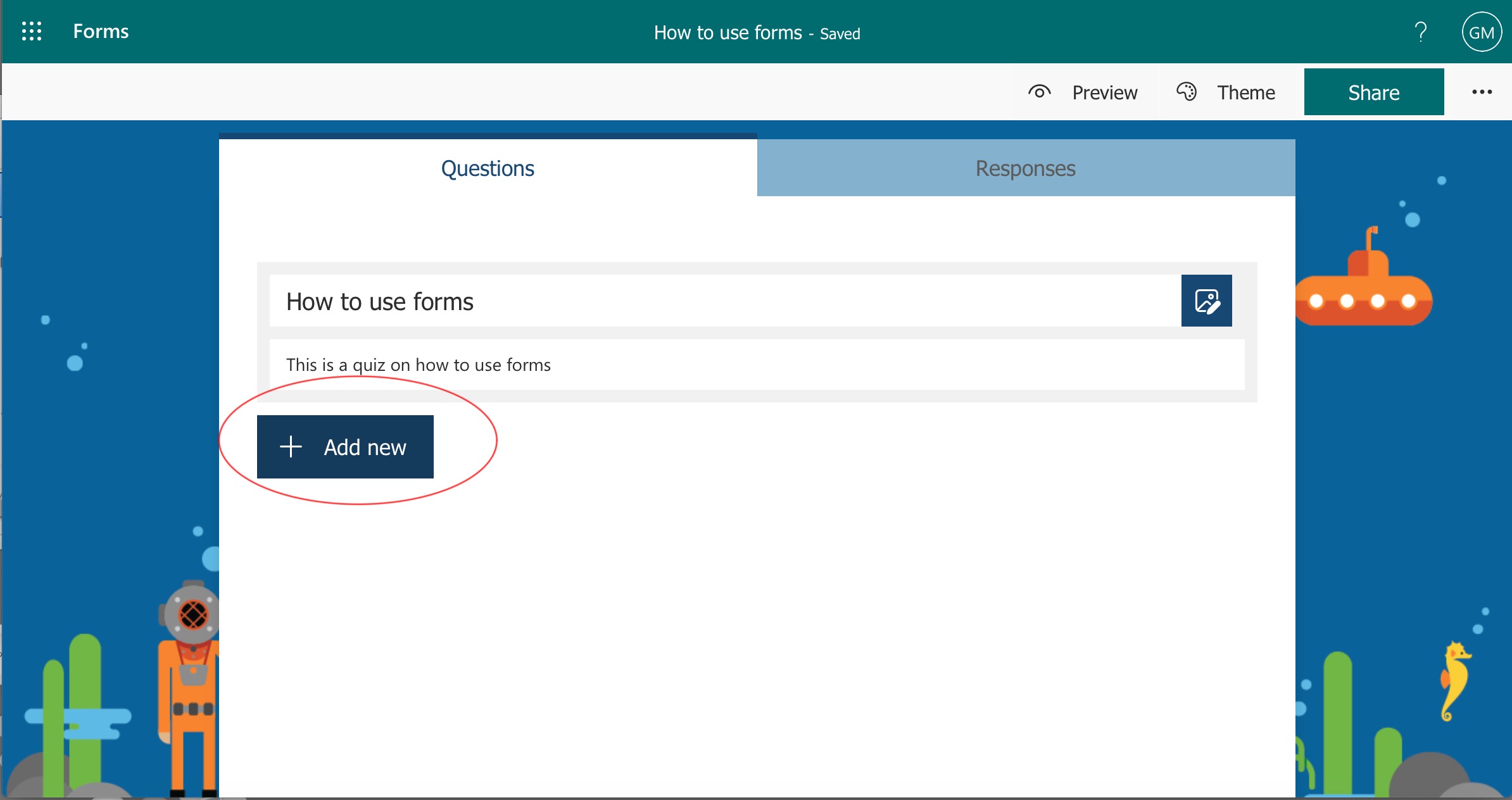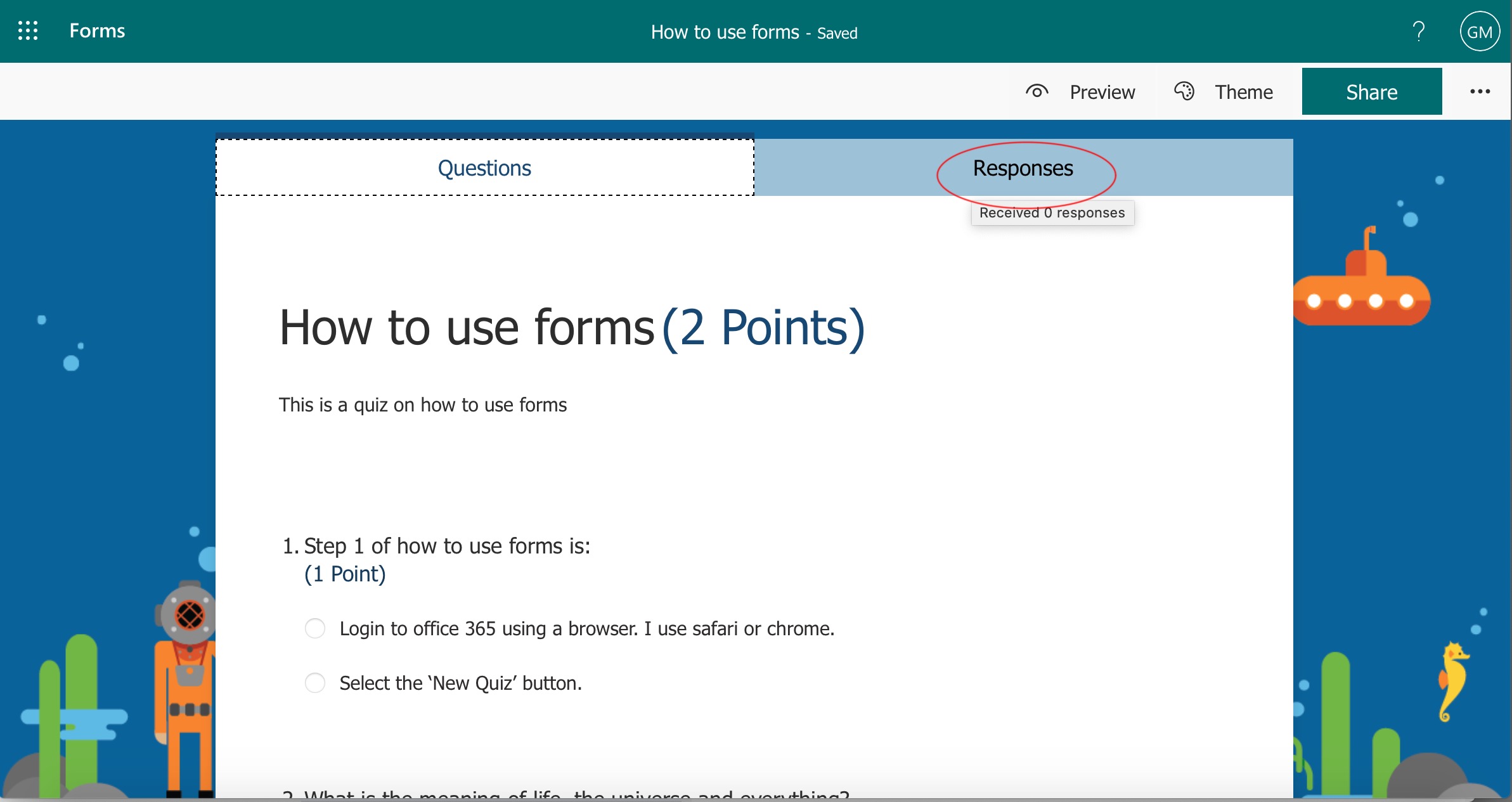 Click on 'Theme' to give your quiz a theme.