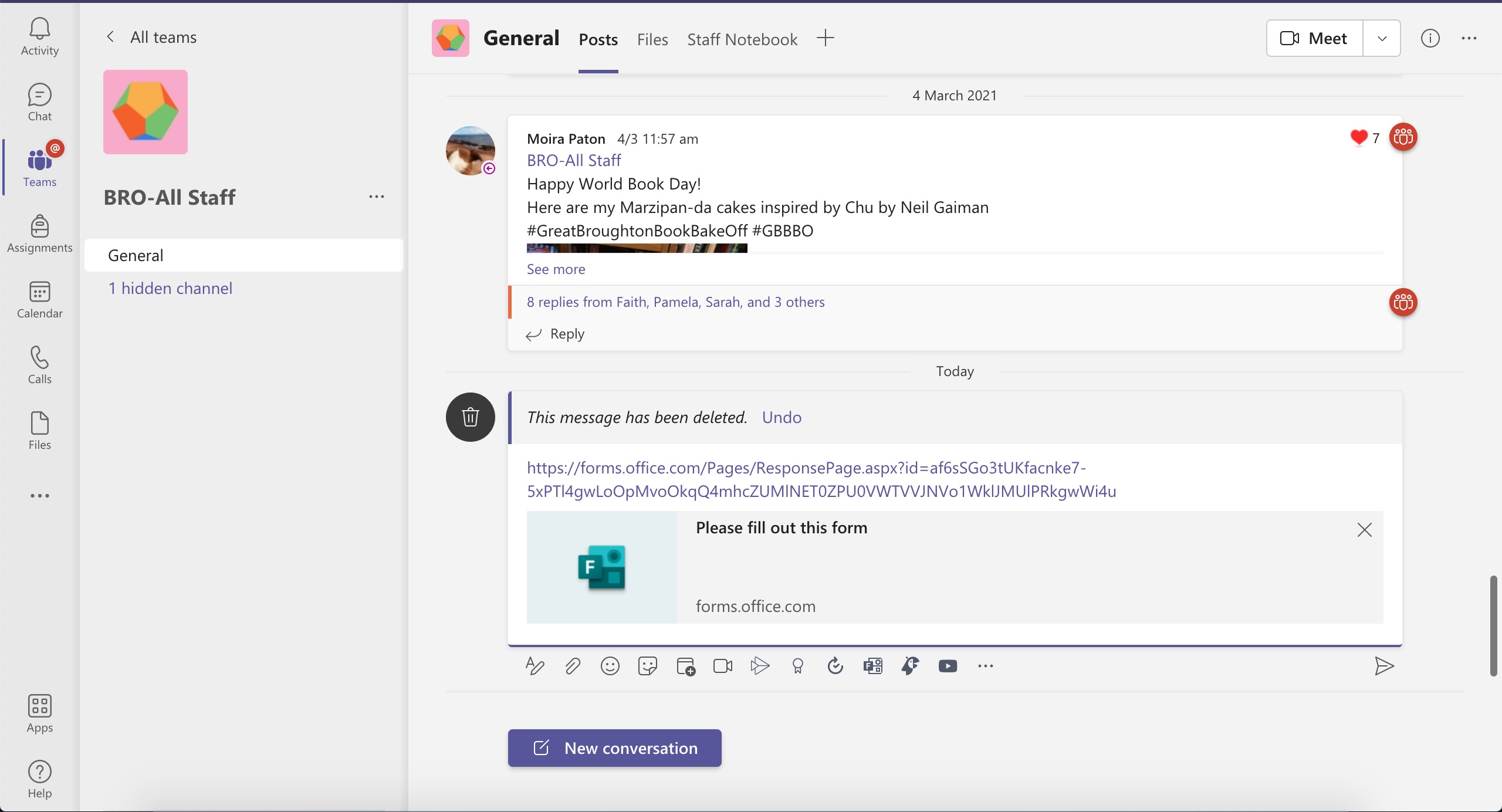 The link can then be pasted to a Team for your students to complete.