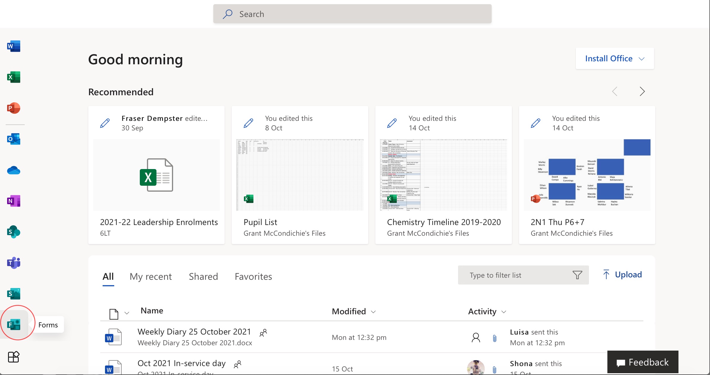 Scroll down the menu on the left-hand side of the screen and select the forms icon.