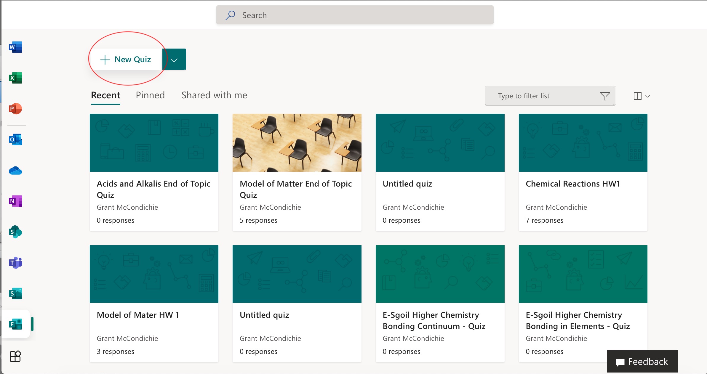 Select the 'New Quiz' button.