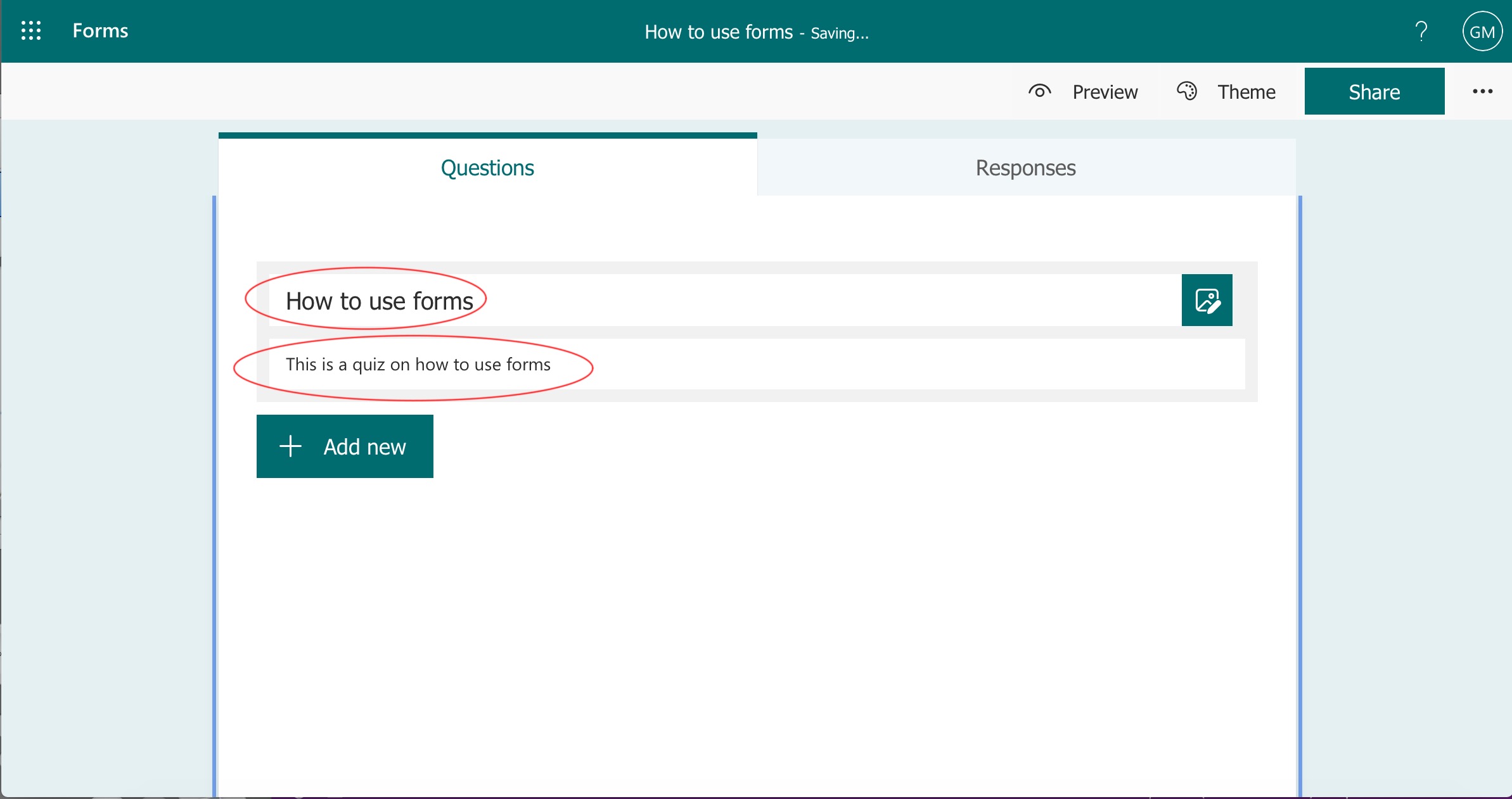 Select 'Add New' to add your first question.