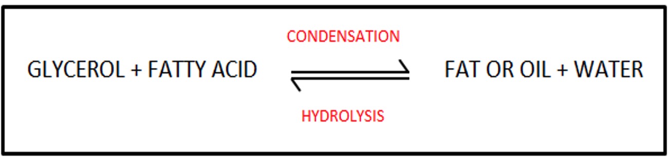 Fats and oils are formed by the condensation reaction of the two reactants.