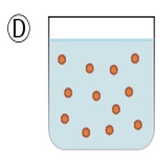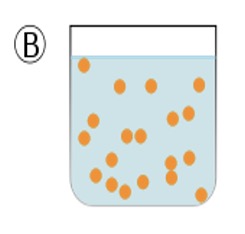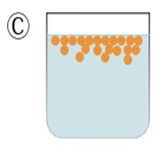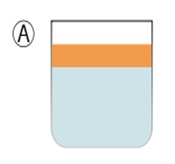 Diagram C shows the result after a few minutes, the two liquids return to form two separate phases, a layer of oil on top of a layer of water.