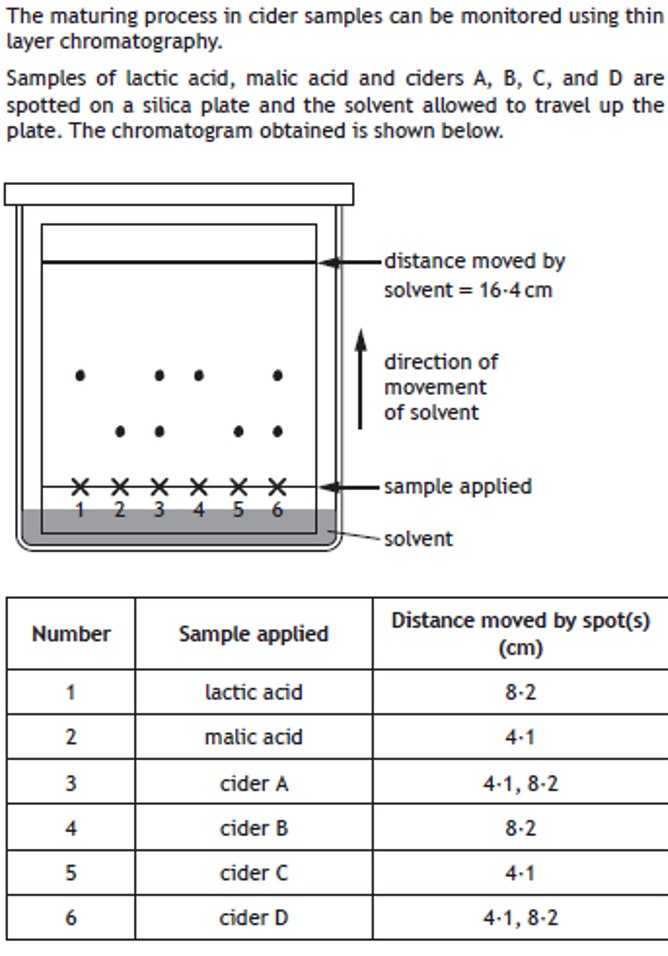 The results of a chromatography experiment can sometimes be presented graphically, showing an indication of the quantity of substance present on the y-axis and retention time of the x-axis.