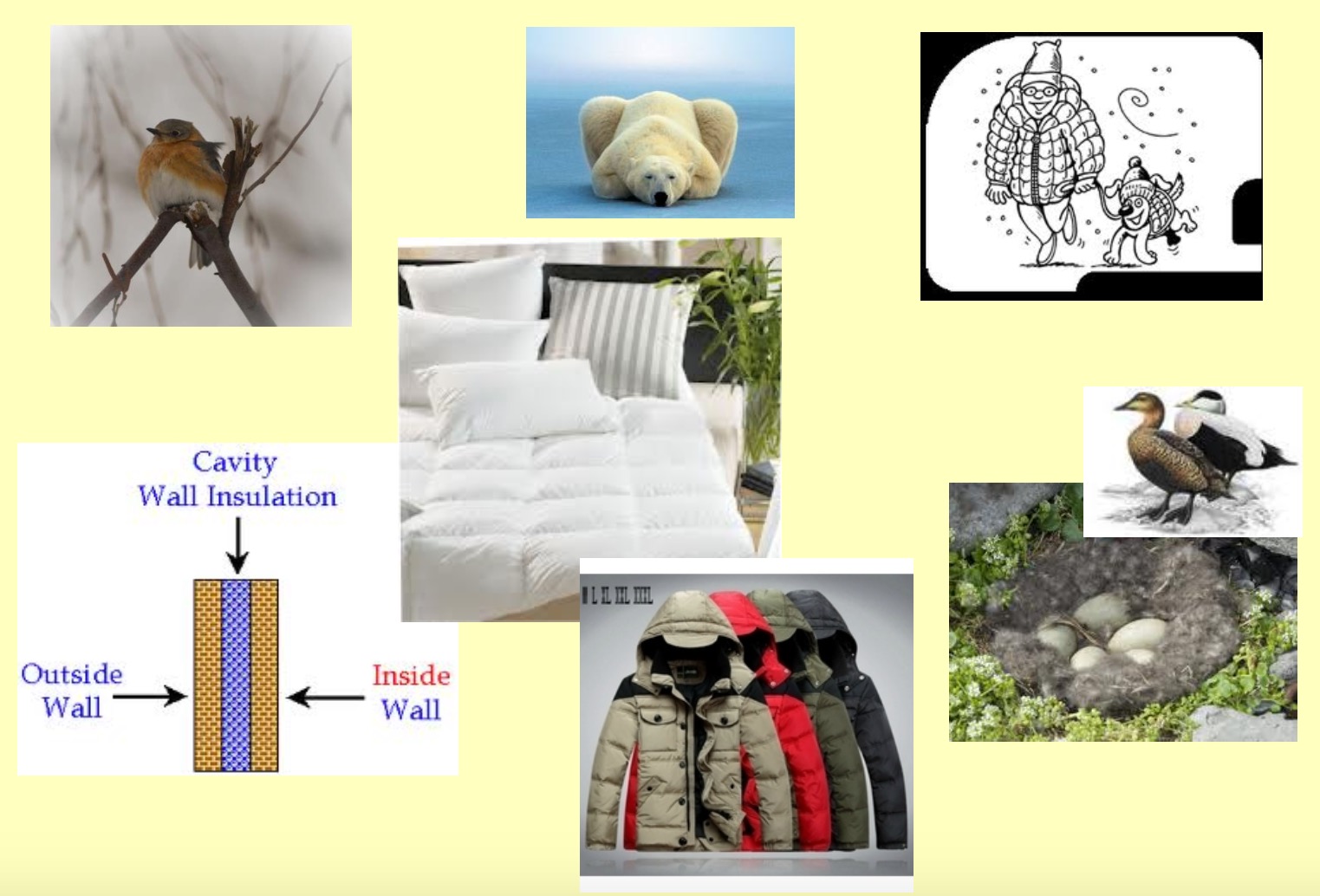 ______ are good at letting heat through, wood and _____ are not so good.