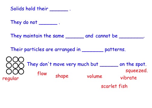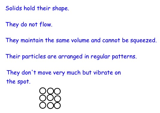 Your teacher will show you the five substances that are in the table below. Decide if they are solids, liquids or gases.