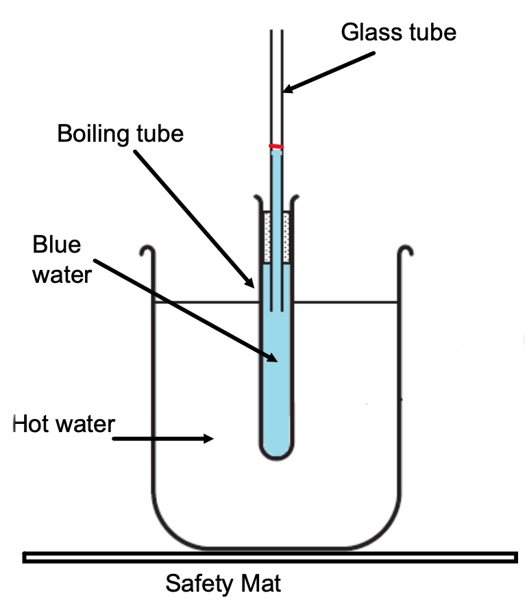 Mark the position of the water in the glass tube at the start, before you have watched the video.