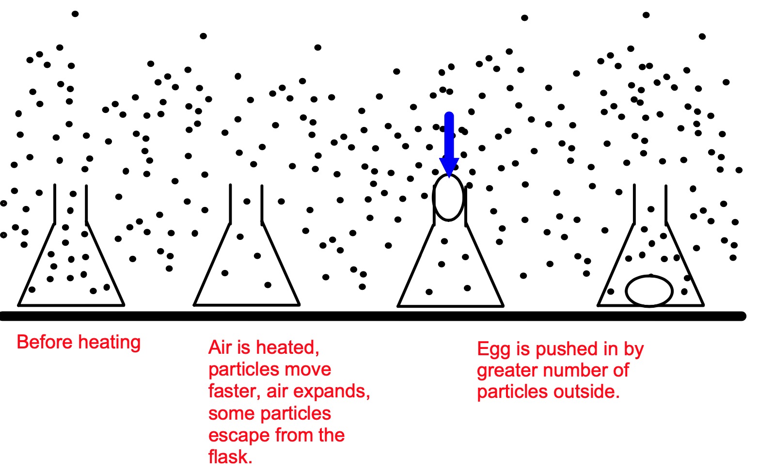Your teacher will perform the flask and egg demonstration or you can wathch the video below.