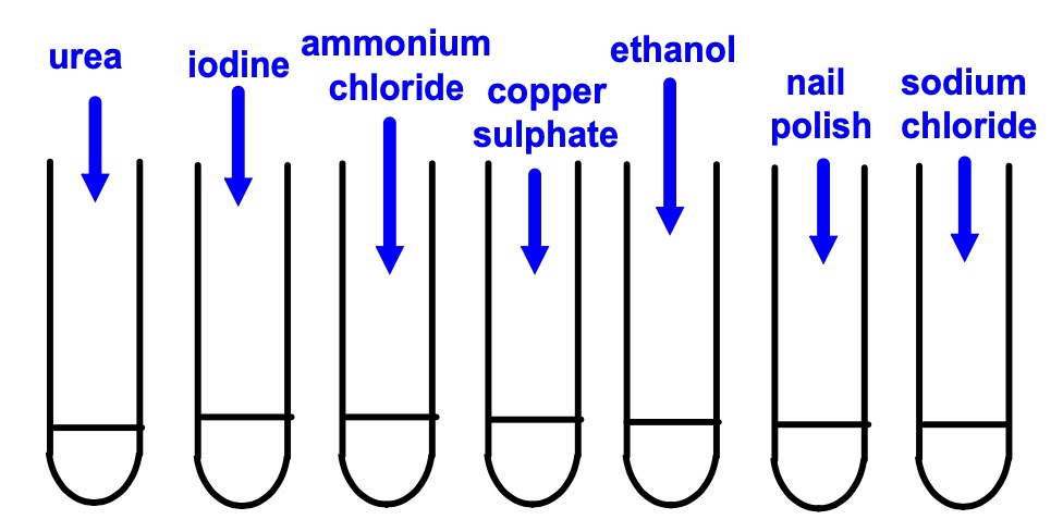 2. For solid solutes use a spatula to add a peasized sample of each.