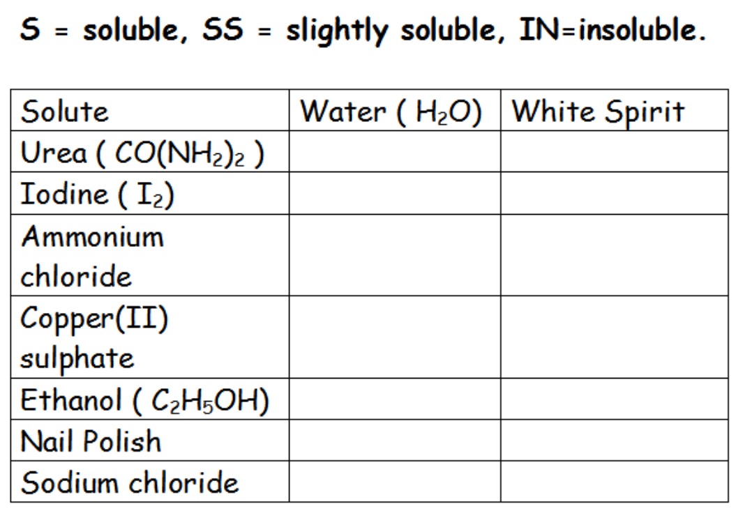4. Repeat steps 1-3 using white spirit as the solvent.