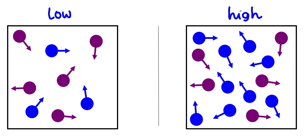 The higher the temperature, the higher the energy the particles have.