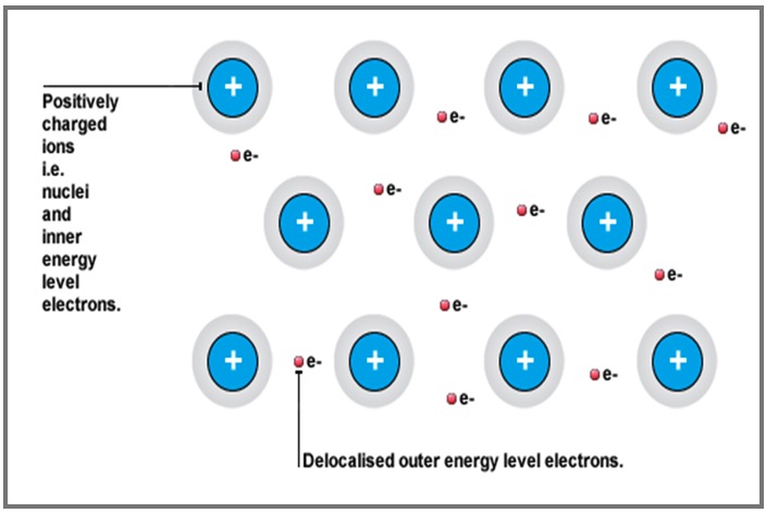 Metallic elements are conductors of electricity because they contain delocalised electrons.
